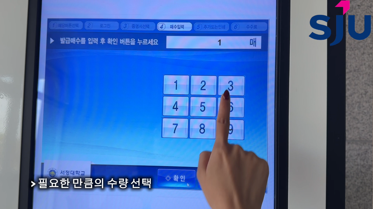 ⑤ 필요한 증명서를 선택 후 확인을 누른다. > 필요한 만큼의 수량 선택