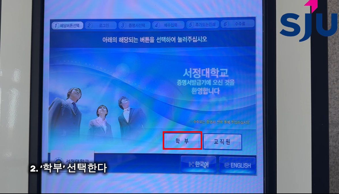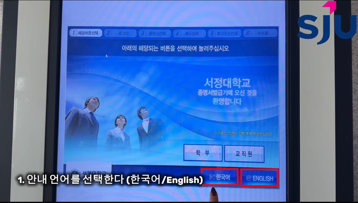 : 먼저 증명서 발급기를 찾는다.