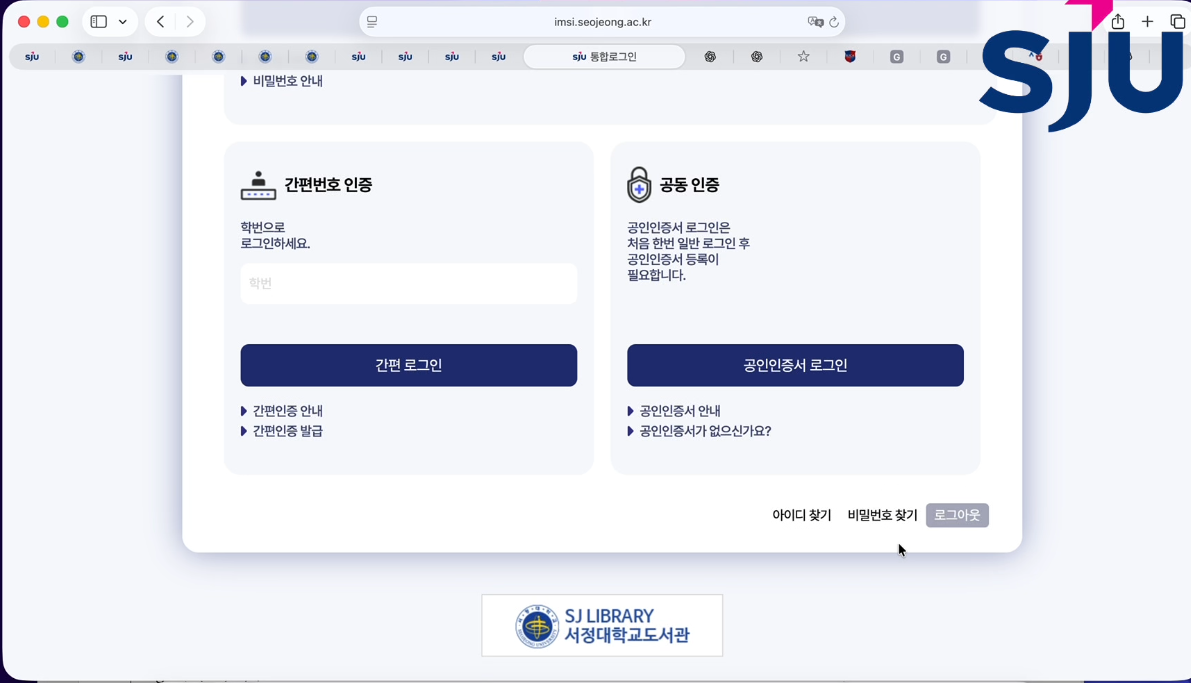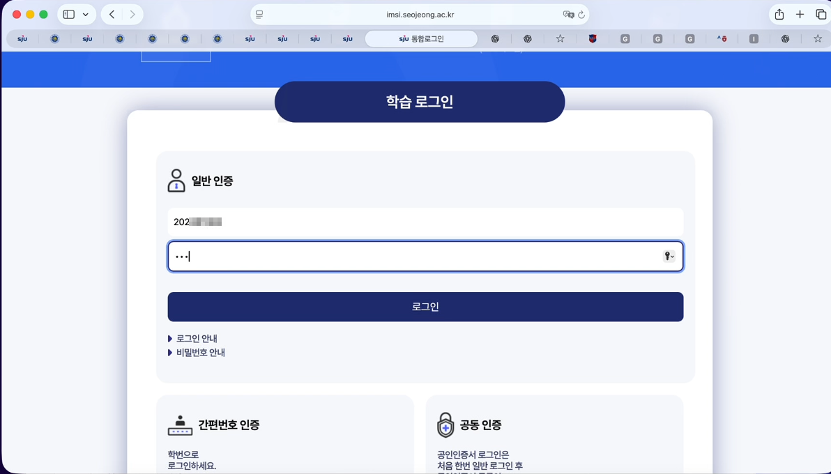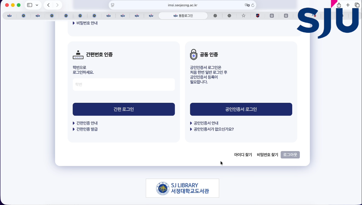 ① Go to the Seojeong University homepage and move to the LMS page > Click Integrated Login.